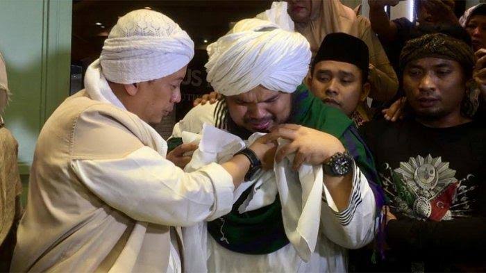 tangis opick dan juga ustadz derry sulaiman dikala membuka dan juga mencium sehelai rambut nabi muhammad saw di halte 3 lapangan terbang internasional soekarno hatta, cengkareng, selasa (7/5/2019)